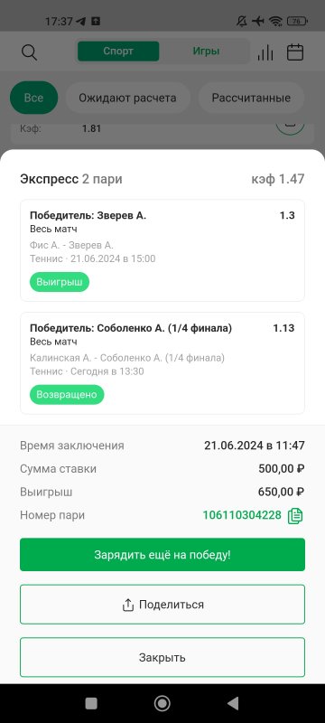 Очевидно,что не получится делать по 10% в день ,хотя бы,на дистанции неделя. Ставка на победу Зверева против Хуркача -это хорошая ставка ,проблема,что я был в нем очень сильно уверен,а точнее в слабоумие Хуркача и поставил ещё флет.