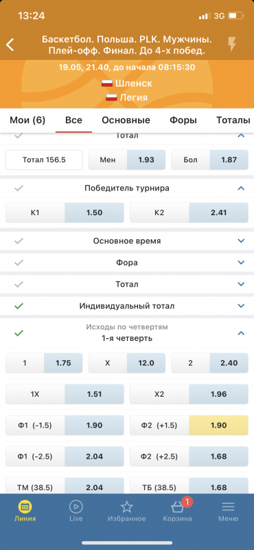 Ты дурной. Бетсити, Фон, Марафон и т.д. ни у кого матча в лайве не было. О каком заходе в 3-й четв. может идти речь? Впрочем, ты в своем репертуаре, как тот самый голубь...