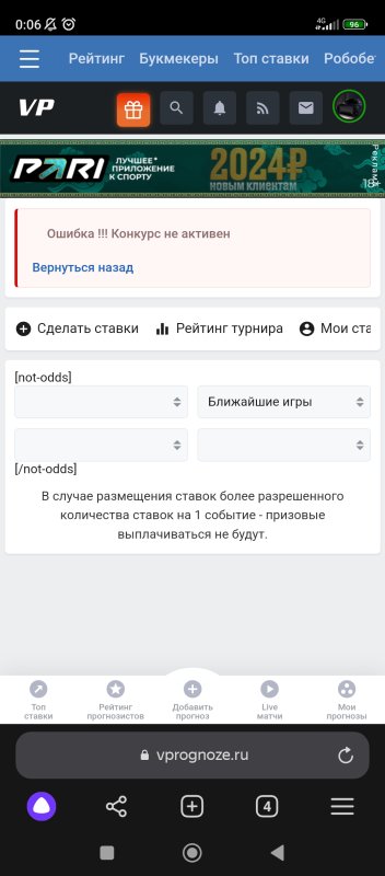 После регистрации либо обновите страницу браузера, либо перейдите по ссылке https://vprognoze.ru/?do=cmp&act=addlive&cid=1352 для того чтобы давать прогнозы в LIVE.
