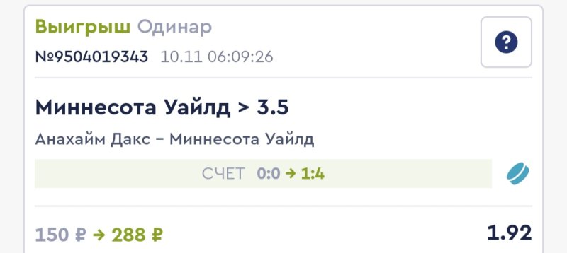 Кстати на тот матч была ставка Миннесота >3.5 с кф.1.92 поэтому чуточку положение поправлено.