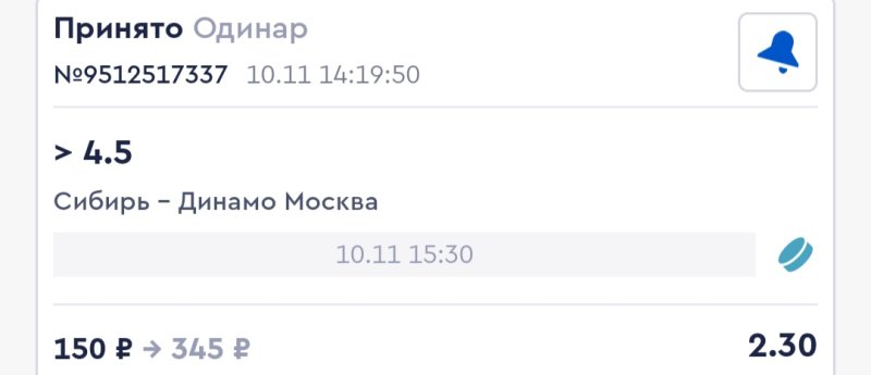 Следующую ставку хотелось бы сделать на матч Сибирь - Динамо.