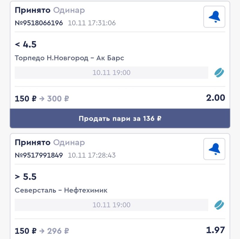 Команды в очных поединках всегда забрасывают достаточное количество шайб, да и вообще в КХЛ одни из немногих кто частенько пробивают тотал. Нефтехимик не плох, ну а Северстали дома чутка нехватило с Авто и Барсом, поэтому сегодня есть шансы отыграться. Уверен что ждёт зрелищный хоккей. Не стал брать 4.5 из за кф в районе 1.50