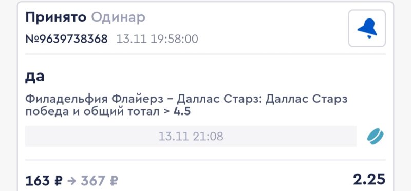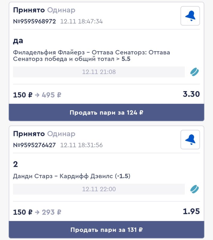 И идём дальше. Есть ещё две ставки перед началом ночной сессии NHL. 👌