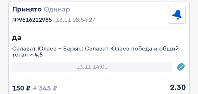 Хочу заиграть победу Салавата и для того, чтобы иметь более или менее достойный кф. усиляю общим тоталом. Подобное проделывал вчера дважды на NHL и дважды эта ставка терпела поражение. Сегодня уверен, что есть все шансы на победу. Барыс очень цепкая и волевая команда, которая способна навязать борьбу кому угодно. Думаю что сегодня мы обязательно увидим шайбы в исполнении Казахской команды одну, а то и две, что заставит Салават идти вперёд и забивать. Сегодня воскресенье, а значит будет полный стадион.. все мы знаем как умеют болеть в Уфе и играть при такой поддержке