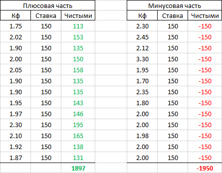 Все ставки с равными суммами. Средний кф больше 2, с заходом 50% получается плюс..вроде какие то схемы свои придумываете, столько цифр в своих блогах, а с элементарной математикой сложности🤔