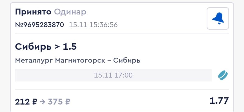 Металлург в последних 5 проиграл 4 и еле еле отскочил в последнем матче с Барысом, уступая 0:2. Для меня честно говоря неожиданностью был кэф на Сибирь 4+, учитывая что в последних очных встречах трижды были Сибярики. И не имея просадки по вчерашнему дню, которая хоть и перекрылась заносом со Звездой я бы рискнул заиграть общую победу гостей. А так сыграю наверняка. И да прибудут с нами две шайбы Сибири!
