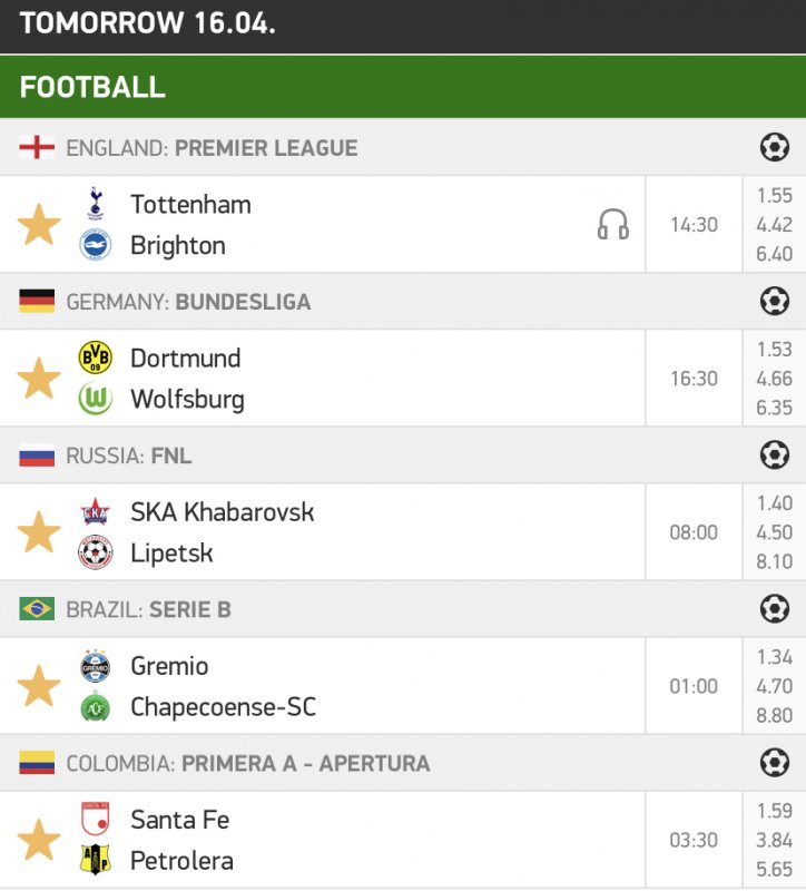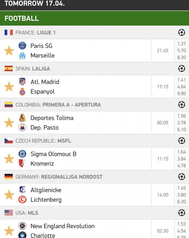 17:15 Atl Madrid -2.5 4.6 2:1 -600