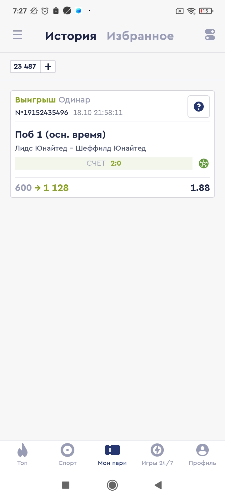 в начале созона это месяцы ? ну ничего себе у тебя терпенияВ начале сезона было 20к, сейчас 24к. Всё ставки по флэту 600 р. Ещё матч в запасе. Ливерпуль Челси на (П1).