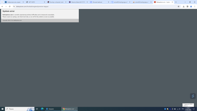 1708169689268.png и к сожалению,работа моего сайта с нейросетью зависит от внешних ресурсов. Бетэксплорера (где бот узнает ближайшие матчи) и редскорес. ком, где другой бот узнает вероятные составы команд на матч, ибо именно составы на матч (общий рейтинг игрока согласно ФИФАиндекс) вкупе с тактической расстановкой идут в обработку этой мат. модели.