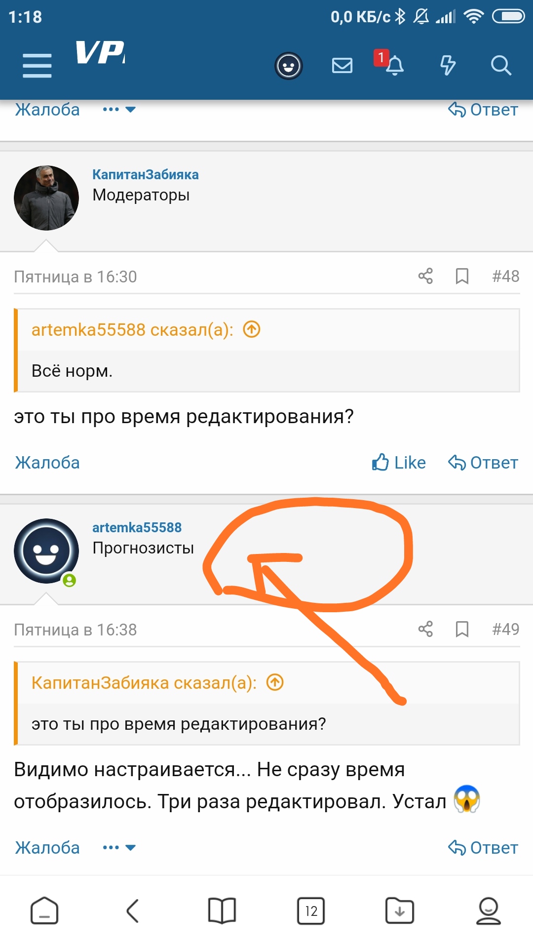поправили, проверь пожалуйстаБлин... Не ура... Как то криво всё. Лимит 1 минута на изменение. После этого нельзя. И время не отображается редактирования. Это очень важно для тех кто ведет темы с банков и ставками!