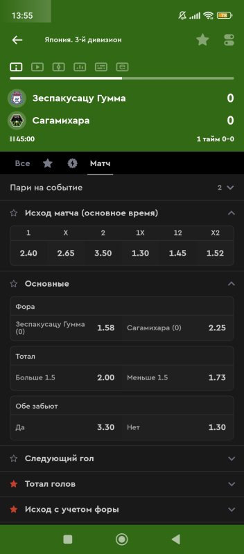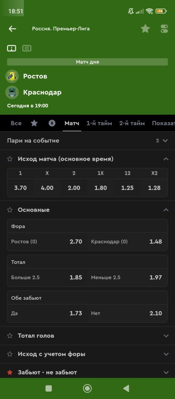 18. 1 тайм п2 КФ 2,35