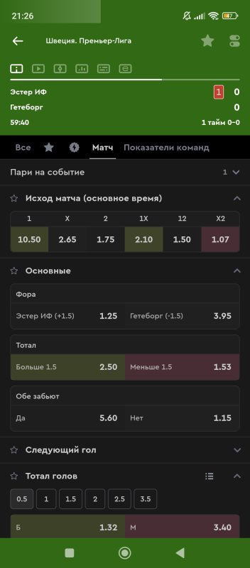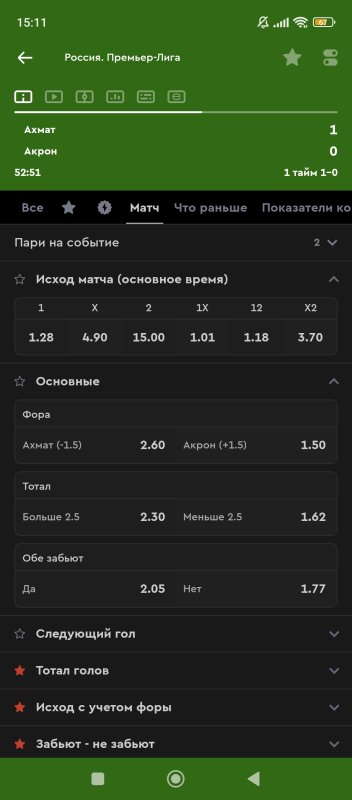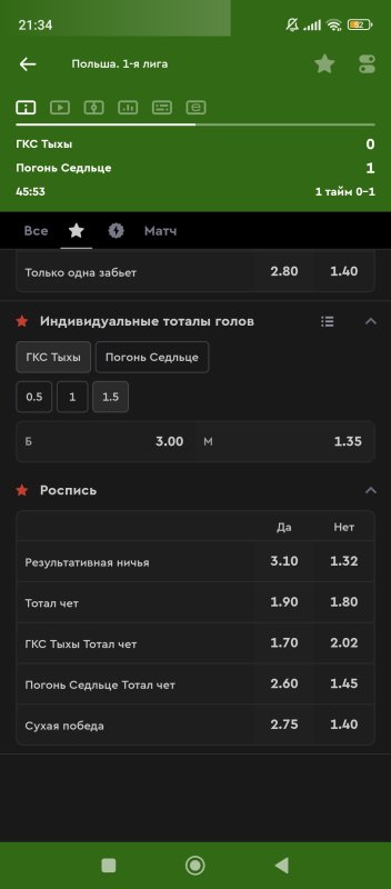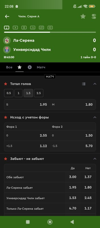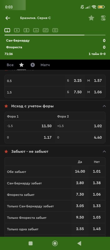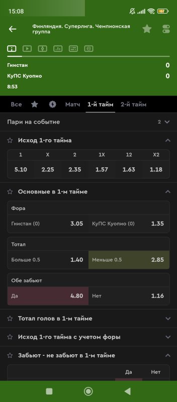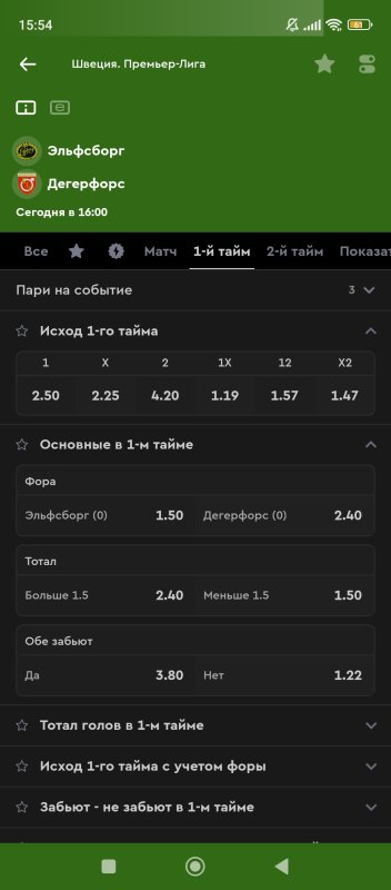 22. 1 тайм итб1(0,5) КФ 2,4