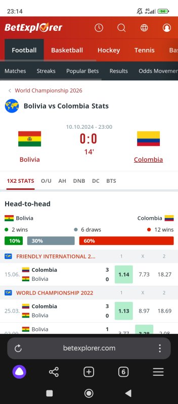Боливия Тб 0,5 в первом тайме КФ 3,0