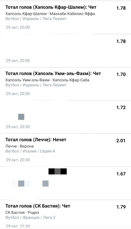 Что то новое...своего рода подбрасывание монетки... Индивидуальный тотал чётный или нечетный.