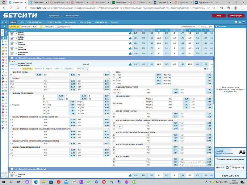 И этой котировки у меня нет. Есть 8,5.Самая главная ставка в которой максимально уверен Тотал самого результативного матча больше 7.5 за 1.66