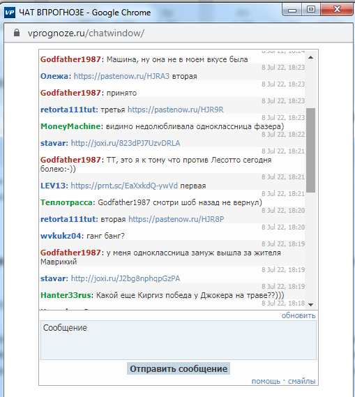 слушай Бетик, общайся нормально. Твои сообщения по спорту попадают в чат, но по спорту ты общаешься редко. Обычно это либо твои заигрывания с мужиками в чате и рассказы как бы ты за деньги целовал им ноги, либо прочая чепуха.