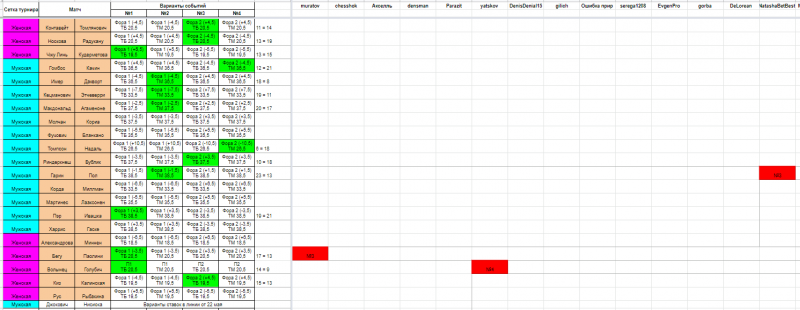 а) если игрок угадал 3 из 3-х событий мужской сетки турнира: игрок получает + 1 балл в мужской и + 1 балл в общий зачет.