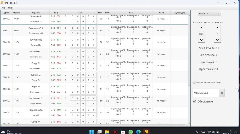 Вечерний скрин с результатами отбора. По Кубку ТТ 2 минуса. Один из них был в 5 утра, второй виден на скрине.