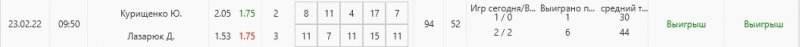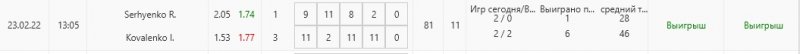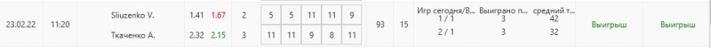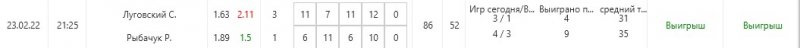 Сегодня особо нечего показывать. По Кубку 1 игра и минус. В сетке 5 игр и тоже 1 минус