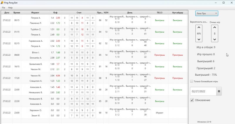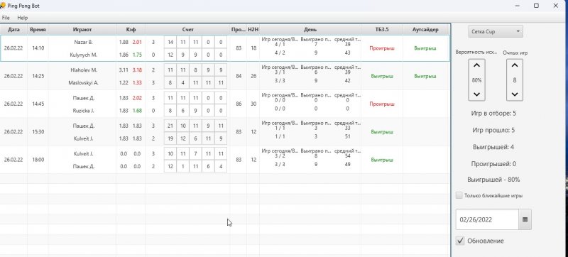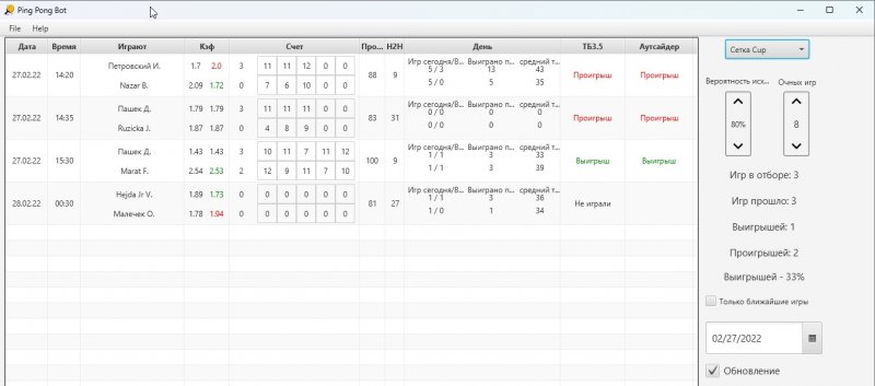 Всех приветствую. Примерно в 8 утра перестали проходить игры по сетке и кубку. Пару дней посмотрим на ситуацию. Если в ближайшее время не восстановится, то буду подбирать другие лиги для отбора (Может есть предложения?). Всем, оплатившим тестирование, компенсирую пропущенное время.
