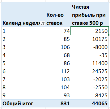До сих пор переходить на вторую выборку меня останавливало только то обстоятельство, что по второй выборке были недели с просадками. Одна неделя была с итогом -8 тысяч. Но после вчерашнего дня всё изменилось. Теперь я вижу, что и по текущей выборке может быть серьёзная просадка. Убыток на последней неделе составил 9 тысяч! Поэтому в данном случае я, естественно, выбираю выборку с лучшей прибылью.