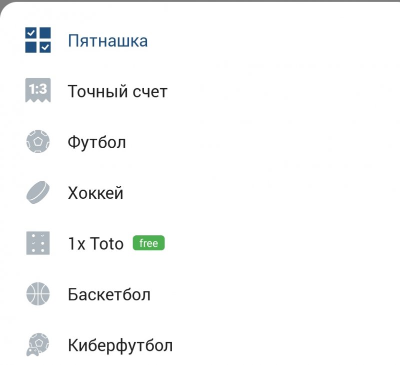 1х Бет, есть, пятнашка, хоккей, футбол, баскет, точный счёт, тото 1х тото вообще бесплатно. Раньше ещё в марафоне буржуйском было.