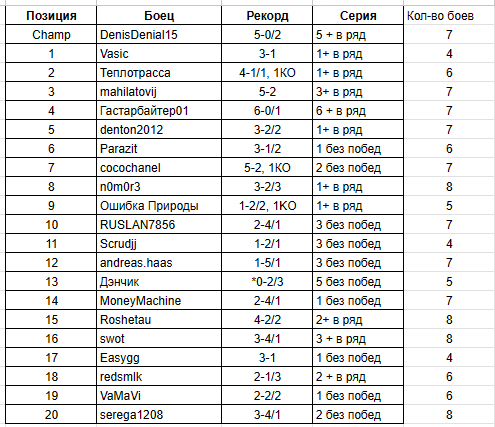 Поздравляю бойцов с юбилейным, десятым кардом! Приятно видеть, что популярность «Бойцовского Клуба» растет. Если раньше бойцы лениво подтягивались с заявками лишь к началу карда, то вчера все заявки расхватали в считанные часы, и даже многим не хватило мест в карде)