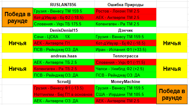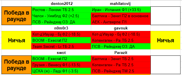 - Бой состоит из 3-х раундов, в которых игроки дают по 3 прогноза на матчи из линии, которую в теме турнира выкладывает КЗ.