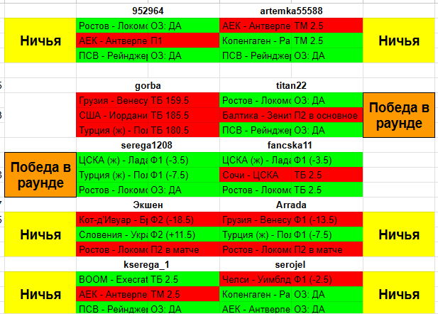 - светло-желтым цветом выделены бойцы, которые идут на победной серии