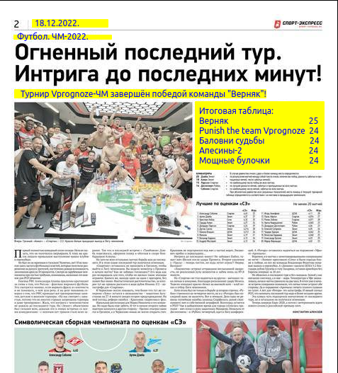 Турнир: Vprognoze - футбол-4 (ЧМ, командный).